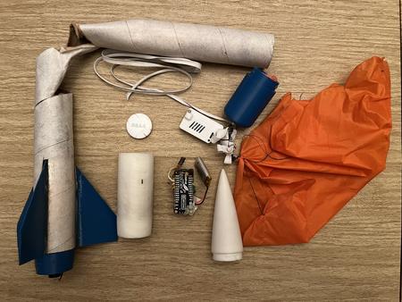 Howard and I were at the Acton field today searching for tree'd rockets. We found six. However, we were only able to retrieve one (along with a few ticks!). The others were high up and tangled in too many branches. A picture of the retrieved rocket is below. The body tube is gone but the plastic fins and nose cone are fine. There were electronics in the nose cone, but everything was soaked, so I don't know if it's still functional. There was also an Apple Air Tag with the engraving 'RBA4'. I put in a new battery - we'll see if it works.